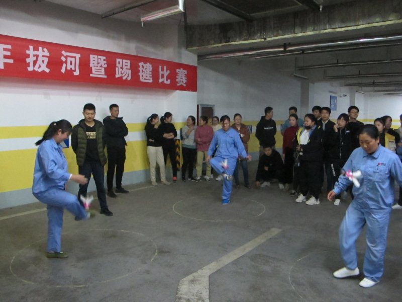 踢毽比賽為限時賽,采取2分鐘計時,每隊5人,同時在各自1.5米的范圍內踢毽, 5人的總體成績為團隊比賽成績。比賽中,毽子在參賽者腳上翻飛起落,單腳踢,左右腳對踢,內踢外翻,花樣不斷,不時贏得現場陣陣喝彩,整場比賽場面緊張激烈。經過比拼,最終322車間代表隊獲得踢毽比賽一等獎。